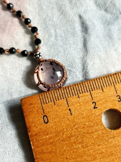 優しいピンク色の中にくっきりとした黒いインクルージョンはマイカとのことです。