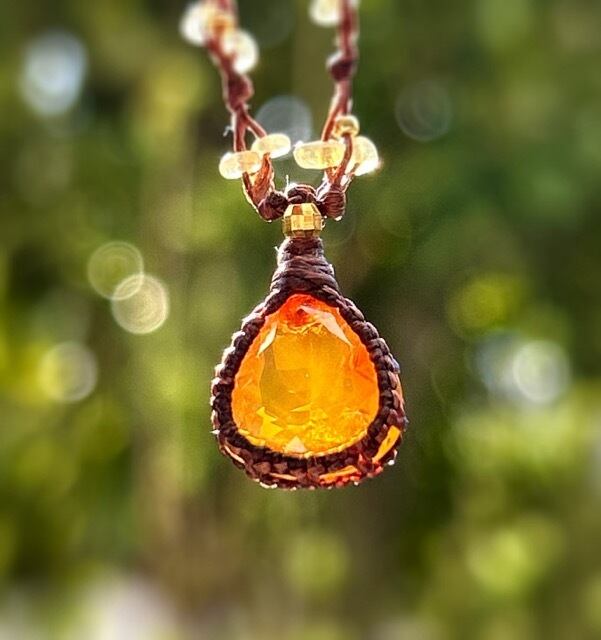 トップのファイヤーオパールは発光しているかのような鮮やかなオレンジ色です。オパール特有の遊色はありませんが、ハイクオリティなファイヤーオパールです。