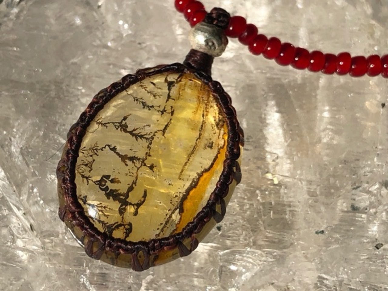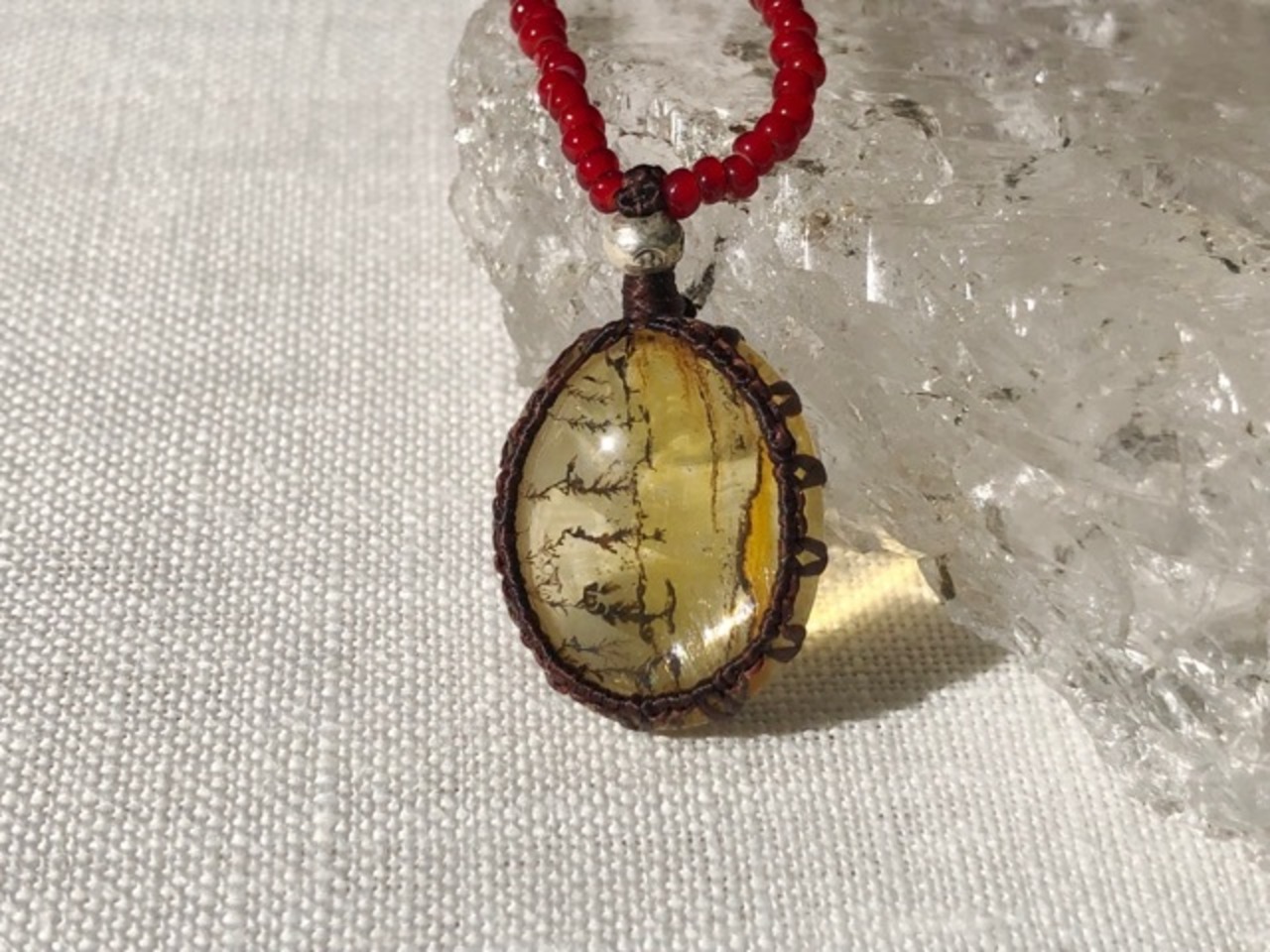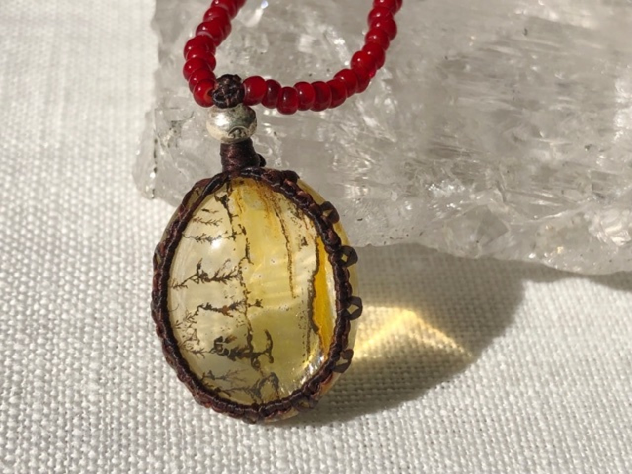 内包物によってまるで植物の化石のような模様になっているクォーツで、黄色い部分は鉄分です。