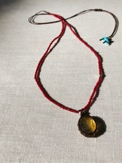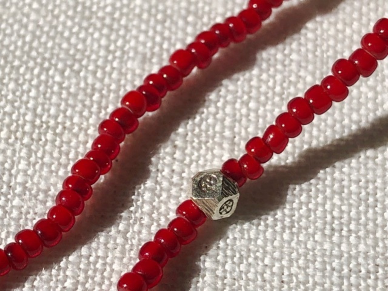 suryaではお馴染みの、アンティークの真っ赤な木の実のような小粒ビーズとカレンシルバーのビーズを合わせました。