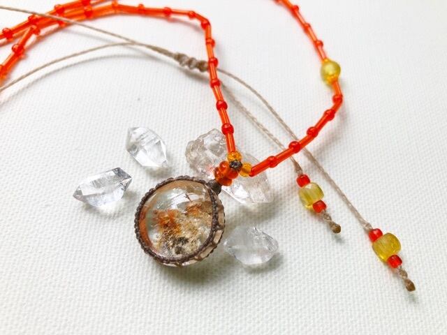 赤っぽいインクルージョンのガーデンクォーツのネックレスです。